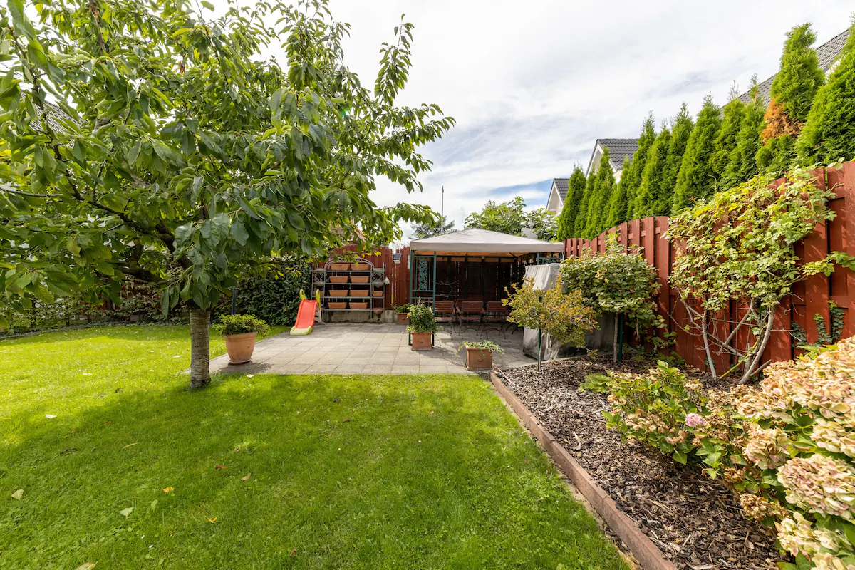 Im Sommer genießen Sie Garten, Fischteich, Sitzplätze und Grill – im Winter lockt der Wintergarten auf eine Tasse Tee.